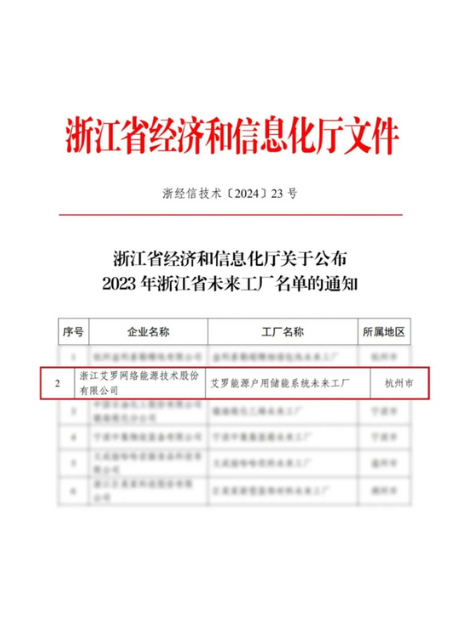 2024:“开元ky888能源户用储能系统”上榜浙江省未来工厂